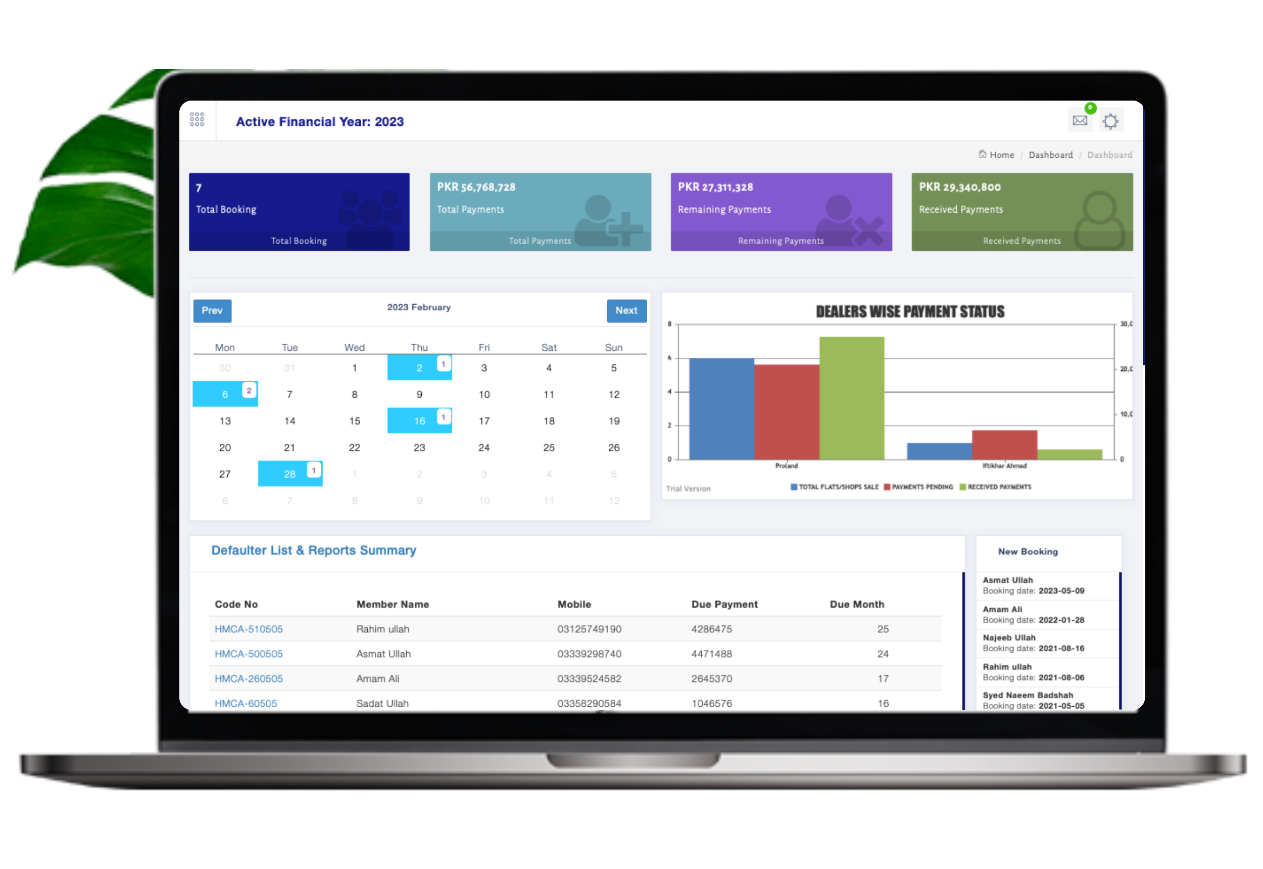 The Dashboard in a property management system provides a comprehensive overview of key metrics and activities related to property operations. It offers real-time insights into rental income, occupancy rates, maintenance requests, and financial performance. Through customizable widgets and visual representations, property managers can quickly assess property performance, track leasing activities, and monitor maintenance tasks. Additionally, the Dashboard may include alerts for upcoming lease expirations, overdue payments, or maintenance issues, enabling proactive management and timely decision-making. Overall, the Dashboard serves as a central hub for property managers to streamline operations, optimize revenue generation, and ensure tenant satisfaction.